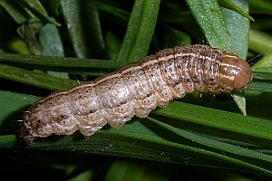 Die Raupen von Apamea sordens leben an verschiedenen Gräsern und sind bereits im Spätherbst ausgewachsen. Im Winter halten sie eine strenge Diapause ein. Ab Februar oder März folgt noch eine kurze Fressphase, bevor sich die Tiere verpuppen. (Heidrun Melzer)