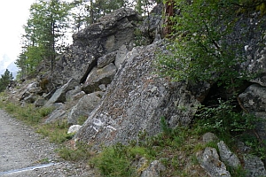 2: Falterfund an Felswand in feuchtem Mischwald, Schweiz, Wallis, Saastal, Saas-Fee, 1800 m, 11. August 2011 (Foto: Hildegard Stalder)Forum