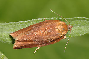 Zur Unterscheidung von zeichnungslosen Aphelia viburnana und männlichen Cnephasia longana siehe [Lepiforumsbeitrag von Frank Stühmer].