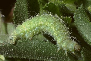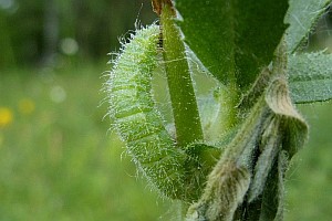 1: Deutschland, Thüringen, Göschwitz bei Jena, Trockenrasen, Raupe an Kriechender Hauhechel (Ononis repens) Mitte Mai 1993 (Studiofoto: Heidrun Melzer), leg., cult. & det. Heidrun MelzerForum