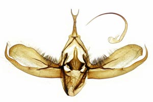 2: Genitalpräparat des mit Lebendbild 8-9 abgebildeten ♀, Österreich, Steiermark, Fischbacher Alpen, Sommeralm, ca. 1400 m, am Licht, 16. August 2018 (det., präp. & Foto: Horst Pichler), conf. Falter Dr. Hans MoserForum