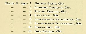 - Erstbeschreibung: Oberthür, C. (1886): Espèces nouvelles de lepidoptères du Thibet. — Études d'entomologie 11: [V]-XII, 13-38, pl. I-VII.