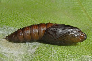 Sehr gerader Verlauf der Grenzlinie zwischen der dunklen und der weissen, nur schwach dunkler marmorierten Flügelpartie. Bei ganz frischen Tieren kann die Weissfärbung im Grenzbereich zur dunklen Innenfläche leicht rosarot überhaucht sein. (Rudolf Bryner)