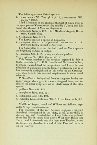 • Curtis, J. (1823-1840): British Entomology; Being Illustrations and Descriptions of the Genera of Insects Found in Great Britain and Ireland: Containing Coloured Figures from Nature of the Most Rare and Beautiful Species, and in Many Instances of the Plants upon which they are Found. Vol. VI. Lepidoptera, Part II. — [Not paginated]. London (E. Ellis & Co.).