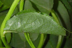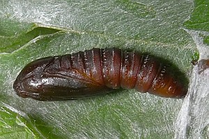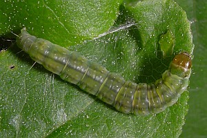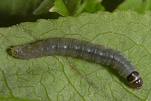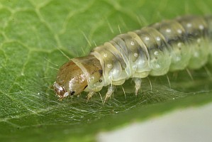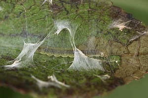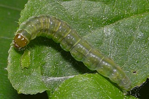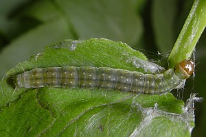 So einig wie bei dieser Art sind sich die Autoren selten. Disqué (1905: 227) nannte Vaccinium myrtillus als einzige Nahrungspflanze, ebenso Kennel (1913: 376). Schütze (1931: 154) formulierte zur Raupe: "Zwischen versponnenen Blättern an Vaccinium myrtillus Verwandlung in der Wohnung (Sorhagen und andere).". Und Schmid (2019: 596) schrieb: "Die Raupe lebt an Heidelbeere (Vaccinium myrtillus). Sie verspinnt einige Blätter zu einer Wohnung, aus der heraus sie die Nachbarblätter befrisst". Auch unsere oben gezeigten Raupen wurden alle an Heidelbeer-Blättern gefunden. Bei Hancock et al. (2015: 43) wird neben der Heidelbeere noch Arctostaphylos uva-ursi) angeführt, eine Angabe, die sich auf Meldungen aus Schottland bezieht. Nur Razowski (2001: 64) verlängert die Liste: "Vaccinium-Arten, besonders V. myrtillus (Vacciniaceae) und Rubus (Rosaceae)." Letztere geisterte zwar schon zuvor durch die Literatur, ist aber sehr fraglich bzw wahrscheinlich falsch.