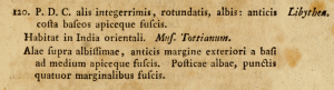 - Erstbeschreibung: Fabricius, J. C. (1775): Systema entomologiae, sistens insectorum classes, ordines, genera, species, adiectis synonymis, locis, descriptionibus, observationibus. 1-832 (Flensburg und Leipzig: Officina Libraria Kortii).