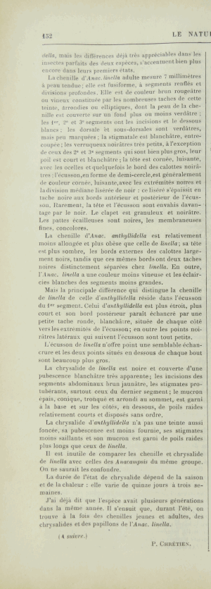 - Erstbeschreibung: Chrétien, P. (1904): Les chenilles des Lins. — Le Naturaliste 26 (416): 151-152.