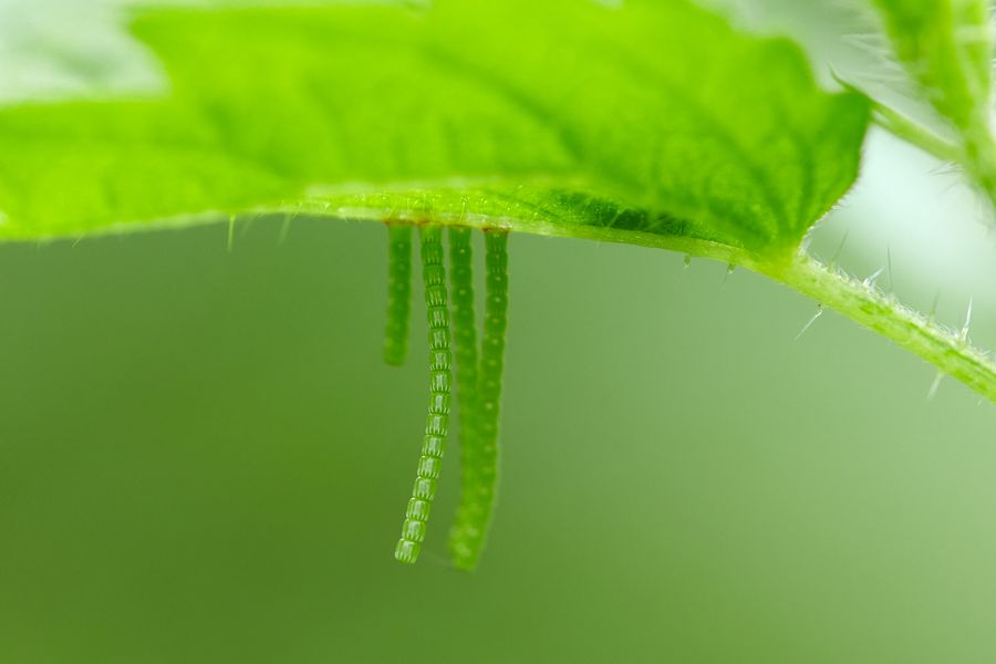 Das Weibchen legt die Eier stets in der Form kunstvoller, kleiner Türmchen an der Blattunterseite ab. Durch diese einmalige Form sind die Eier unverwechselbar.
