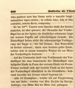 - Erstbeschreibung: Bremer, O. (1861): Neue Lepidopteren aus Ost-Sibirien und dem Amur-Lande, gesammelt von Radde und Maack. — Bulletin de l'Académie impériale des sciences de St-Pétersbourg. Série 3 3 (7): 461-496.