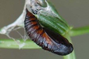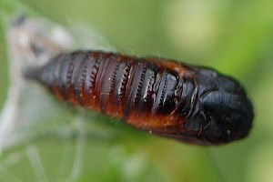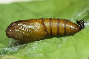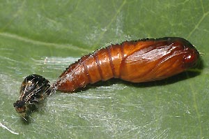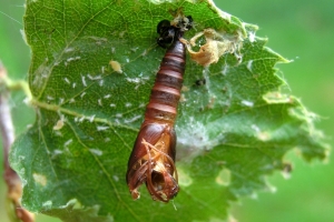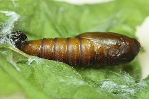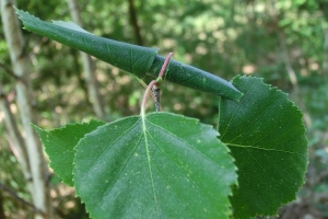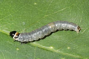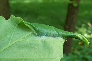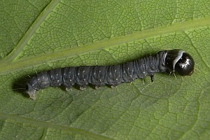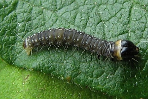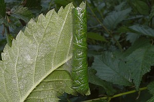 Oben gezeigte Raupenfunde betreffen Stieleiche (Quercus robur), Feld-Ulme (Ulmus minor), Faulbaum (Frangula alnus), Mispel (Mespilus germanica), Schlehe (Prunus spinosa), Goldregen (Laburnum anagyroides), (Betula sp.) und Linde (Tilia sp.).