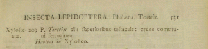 - Phalaena (Tortrix) xylosteana Linnaeus, 1758 [Originalkombination]