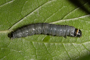 Schütze (1901: 118) berichtete: "Von mir bei Rachlau gefangen und von Buche erzogen." Doch schon Schütze (1931) schrieb: "Polyphag, besonders aber an Quercus, Prunus cerasus, Prunus domestica, Pirus [Pyrus, Malus], Sorbus aucuparia, Lonicera, Tilia, Rubus fruticosus, Salix caprea, Fraxinus, Myrica. Verwandlung in der Wohnung (Sorhagen).