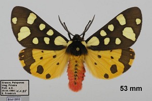 - Ortiz, A. S., Rubio, R. M., de Freina, J. J., Guerrero, J. J., Garre, M. & J. L. Yela (2023): DNA barcoding and morphology reveal European and western Asian Arctia villica (Linnaeus, 1758) as a complex of species (Lepidoptera, Erebidae, Arctiinae). — ZooKeys 1159: 69-86. [Zum PDF auf zookeys.pensoft.net]