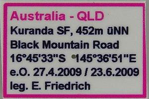 5: ♀, Australia, Queensland, Cairns-area., Kuranda, Black Mountain Road, 452 m, e.o. breeding, ♀: 27. April 2009 lux; (det. & phot.: Egbert Friedrich)