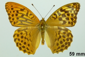 | A. pandora | ![]() | ![]() | ![]() | Oberseite 1 - bei ♂ 2 Duftschuppenstreifen auf Cu1 und Cu2 2 - relativ kleine Postdiskalflecken 3 - bei ♀ Diskalflecken meist verbunden 4 - grünlicher Schimmer Unterseite 5 - Vorderflügel orangerot, kardinalrot 6 - Silberstreifen oft nur schwach ausgeprägt, manchmal unterbrochen |