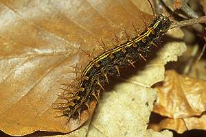 Die ♀ ♀ legen ihre Eier nicht an die Nahrungspflanze der Raupen, sondern in Rindenrisse von Bäumen, manchmal in mehreren Metern Höhe. Die Raupen schlüpfen noch im Spätsommer und überwintern ohne Nahrungsaufnahme an der Rinde des Baumes. Im Frühjahr verlassen sie dieses Versteck und suchen nach im Waldsaum wachsenden Veilchen (Viola-spp.), ihren Nahrungspflanzen. Die in Mitteleuropa hauptsächlich genutzten Veilchenarten dürften das Wald-Veilchen (Viola reichenbachiana) und das Rauhhaarige Veilchen (Viola hirta) sein. Ob darüber hinaus auch andere Pflanzen, wie die oft zitierte Himbeere, wenigstens von der erwachsenen Raupe genutzt werden, ist nicht näher bekannt. Sicher belegt hingegen, ist ein Raupenfund an Mädesüß (Filipendula ulmaria).