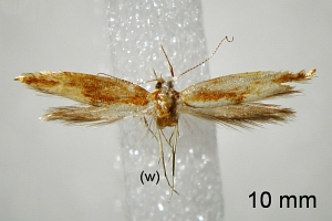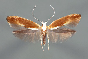 - Argyresthia pulchella (Grundfarbe dunkelbraun bis violettbraun)
