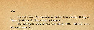 Frey (1882) erläutert: "Ich habe diese Art meinem verehrten befreundeten Collegen, Herrn Professor G. Huguenin zubenannt."