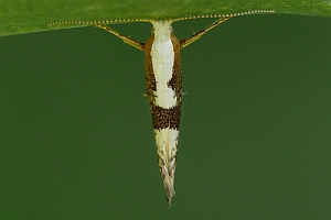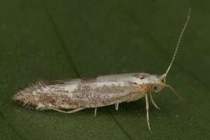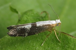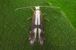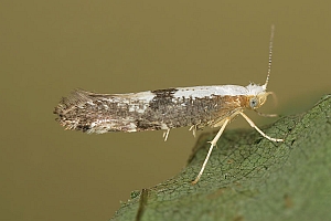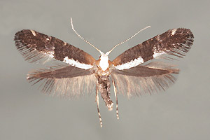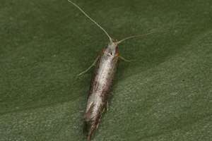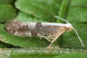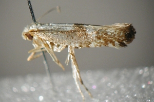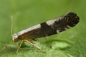 - Argyresthia conjugella (veilchenbraune Färbung mit feiner, heller Rieselung)