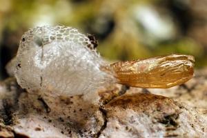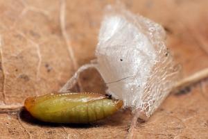 2: Verpuppungsgespinst, Deutschland, Niedersachsen, Umgebung Rodenberg, einschürige Wiese, ca. 80 m, Raupe 3. Mai 2013 (leg., cult. & Foto am 7. Mai 2013: Tina Schulz)Forum