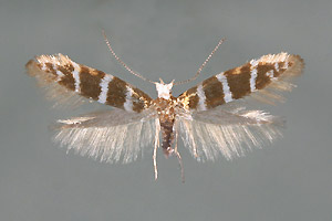 Die drei weissen Querbinden auf braunem Grund machen die Art unverwechselbar.