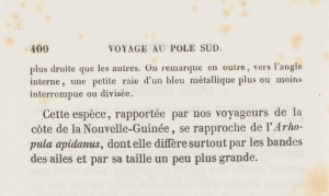 - Erstbeschreibung: Blanchard, É. (1853): Zoologie. Descriptions des Insectes. Voyage au pole sud et dans l'Océanie sur les corvettes l'Astrolabe et la Zélée ; exécuté par ordre du roi pendant des années 1837-1838-1839-1840, sous le commandement de M. J. Dumont-d'Urville, Capitaine de vaisseau. Zoologie. Tome quatrième: 1-422, 25 pls.