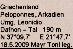 Vor diesem Hintergrund verwundert es nicht, dass die Art auch den Südosten Europas erreicht hat. Mit dem oben gezeigten Falter vom 22. Juli 2014 von der Halbinsel Methana (Umg. Kaimeni Chora, Vulcania, 325 m) gelang Friedmar Graf der Erstnachweis für Griechenland und damit für Europa. Wie sich zeigen sollte hatte Toni Mayr mit dem ebenfalls oben abgebildeten Falter vom 18. Mai 2009 von der Peloponnes die Art schon vorher in Griechenland registriert.