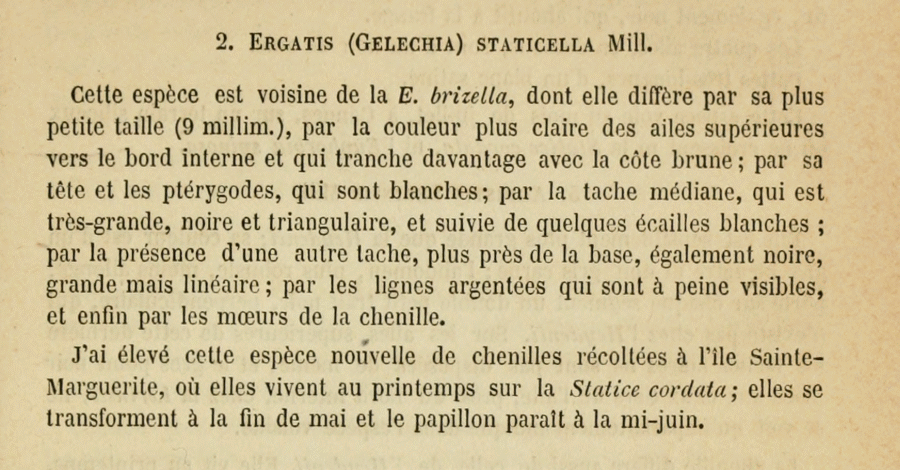 - Ergatis (Gelechia) staticella Millière, 1876 [Originalkombination]