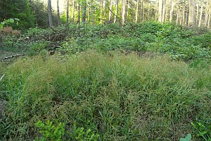 1: Lichtung im Heidewald mit großen Beständen der Raupennahrungspflanze Kleiner Sauerampfer (Rumex acetosella): Deutschland, Sachsen, Dübener Heide bei Doberschütz, 22. Mai 2010 (Foto: Heidrun Melzer)