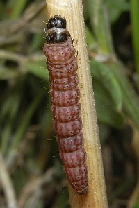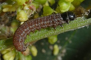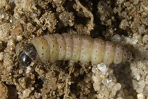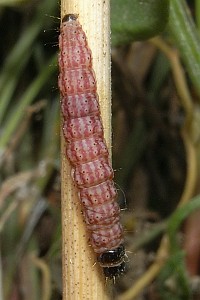 9: L1 (Eiraupe): Deutschland, Niedersachsen, Hannover, 50 m, Kugelfangtrift (bodensaurer Magerrasen), Eier an Filago arvensis (Acker-Filzkraut) 27. Juni 2019, Zuchtfoto 1. Juli 2019 (cult. & fot.: Tina Schulz), det. durch Barcoding (TLMF Lep 26244)Forum