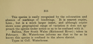 - Erstbeschreibung: Lower, O. B. (1908): Descriptions of New Australian Hesperiadæ. — Transactions and Proceedings and Report of the Royal Society of South Australia 32: 311-317. Adelaide (W. C. Rigby). — Digitalisat auf biodiversitylibrary.org: [314]
