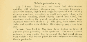 - Cholotis pachnodes Meyrick, 1917 [Originalkombination]