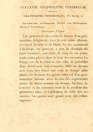 - Grapholitha tenebrosana Duponchel, [1843] [Originalkombination mit "th" im Gattungsnamen]