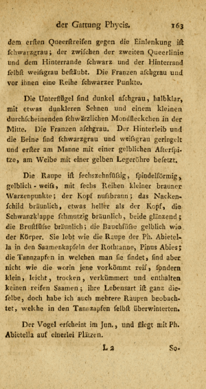 Schon in der Erstbeschreibung von Zincken (1818) wird die Raupe in Zapfen der Picea abies ausführlich beschrieben.