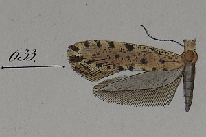 1-2: Herrich-Schäffer ([1853]: Tineides pl. 83 fig. 633) [reproduziert von Jürgen Rodeland nach Band im Staatlichen Museum für Naturkunde Karlsruhe]