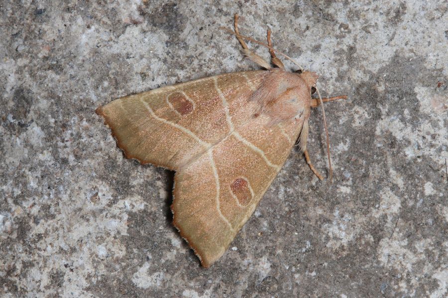 Hier gibt es noch etliche offene Fragen. Ronkay et al. (2001: 53) schrieben: "Overwintering stage is the egg. Larvae hatch in spring shortly after bud burst, they feed on the young and tender leaves of different species of trees (Quercus faginea, Q. ilex, Amelanchier and Sorbus spp.) [...]". Da die Falter hauptsächlich in Eichen-Gehölzen gefunden werden, sollte die Angaben zu den Eichen stimmen - ob das auch für die Rosaceen-Gehölze gilt, ist noch abzusichern - da die nahe verwandte Atethmia ambusta an einem Rosaceen-Gehölz lebt, erscheint dies durchaus möglich.