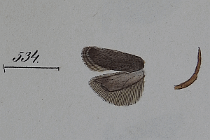 1-2: Herrich-Schäffer ([1853]: Tineides pl. 71 fig. 534) [reproduziert von Jürgen Rodeland nach Band im Staatlichen Museum für Naturkunde Karlsruhe]