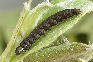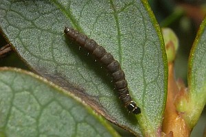 Man sucht die Raupe am günstigsten, bevor die Kriechweide im vollen Grün steht. Die Raupe verbleibt bis dahin in ihrem Überwinterungsgespinst und ist gut zu finden. Später verlässt sie es und ist im satten Grün der Zweige kaum noch auszumachen. [Friedmar Graf]