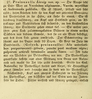 - Erstbeschreibung: Lienig, F. & P. C. Zeller (1846): Lepidopterologische Fauna von Lievland und Curland. — Isis von Oken 1846 (3-4): 175-200, [Spaltennummer 201 nicht vergeben], 202-302. Leipzig (Brockhaus).