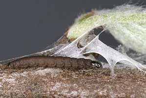 1-2: Wohngespinste, Österreich, Niederösterreich, Schwarzau am Steinfeld, [1] mit Raupe, an Weißdorn (Crataegus monogyna), 9. April 2009, [2] mit Puppe, an Steinmispel (Cotoneaster integerrima), 24. Mai 2009 (Fotos: Peter Buchner), leg., cult & det. Peter Buchner.Forum