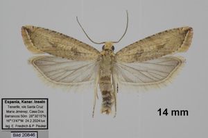Zum Vorkommen auf Teneriffa hatte sich schon Diakonoff (1963: 351) geäußert. Er schrieb: "Distribution. Ceylon (Barberyn Island); New Guinea (Sudest Island); Solomon Islands; Marianas Islands." Und dann weiter: "Canary Islands, Tenerife, IV.1884 (LEECH) (WALSINGHAM Collection), gen. no. 3697, ♂ (no. 62294), 3700 ♂ (78866), 3701 ♂ (78865) and 3705 ♀ (78864). All in WALSINGHAM Collection, British Museum. It is surprising to find minima "so far from home". This species must be widely distributed, but must have escaped attention of collectors due to its modest colouring and size."