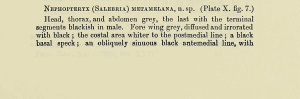- Erstbeschreibung: Walsingham, L. & G. F. Hampson (1896): On moths collected at Aden and in Somaliland. — Proceedings of the General Meetings for Scientific Business of the Zoological Society of London for the Year 1896: 257-283, pl. X. [Digitalisat auf biodiversitylibrary.org]