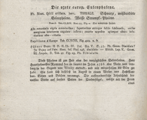 - Esper, J. C. [1796-1805]: Der europäischen Schmetterlinge Vierten Theils zweiter Band erster Abschnitt welcher die Eulenphalenen von Tom. IV Tab. CXXVI. Noct. 47. — Tom. IV. Tab. CLXXVIII. Noct. 99. und die Bogen Bbb bis Uuu enthält. 373-698, pl. CLXXXIV-CXCVIII.
