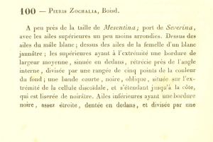 - Erstbeschreibung: Boisduval (1836): Histoire naturelle des insectes. Species général des lépidoptères 1: i-xij, 1-690, 1-6 (explication des planches), pl. 1-24. Paris (Roret).