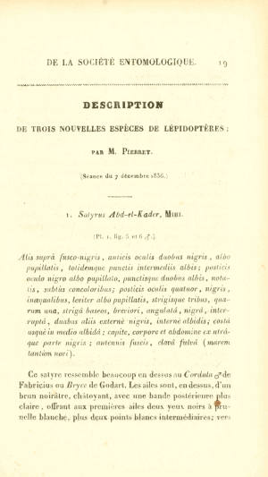 - Satyrus abdelkader Pierret, 1837 [Originalkombination]