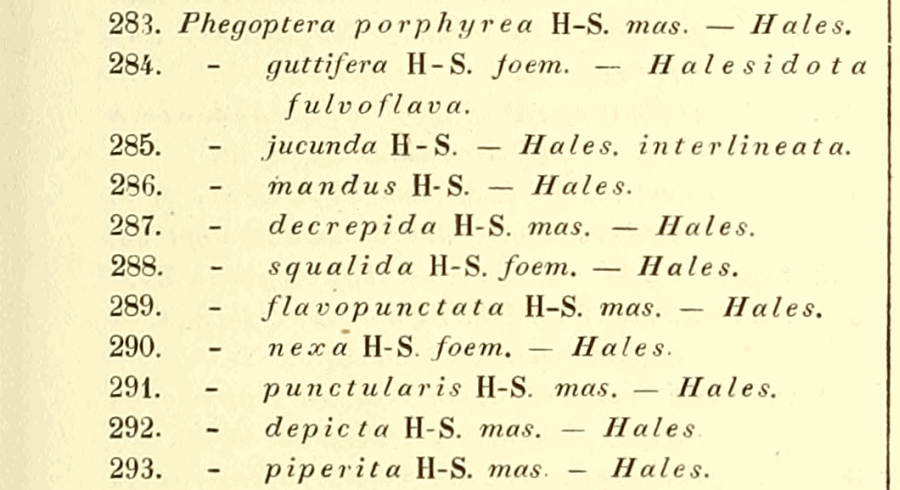 - Phegoptera piperita Herrich-Schäffer, [1855] [Originalkombination]
