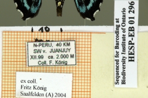 1-3: ♀, Daten siehe Etiketten (fot.: Ernst Brockmann, Fotos bearbeitet: Michel Kettner), coll. Departamento de Zoologia, Universidade Federal do Paraná, Curitiba, Paraná, Brazil. Dieser Falter wurde ursprünglich als Paratype von Elbella madeira bestimmt. Erst nach der DNA-Untersuchung wurde Blubella etna festgestellt.