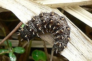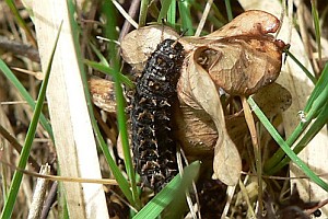 Nach Regenfällen nutzen die Raupen gern Sonnenscheinphasen, um sich zu sonnen, Wärme zu absorbieren und zu fressen. Nur dann besteht die Chance, sie auch ohne Durchwühlen der Streuschicht zu entdecken. Im Bild 1 unten nutzte die Raupe einen trockenen Vorjahresstängel der Wald-Engelwurz (Angelica sylvestris) zur Wärmeabsorbtion, direkt daneben Blätter und Blüten der Wirtspflanze Viola riviniana. (Nach einem Beitrag von Gabriel Hermann und Michael Zepf im [Forum])
