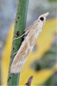 Recht detaillierte Angaben zur Lebensweise finden sich auf der Artseite des Government of British Columbia, Ministry of Forests, Lands and Natural Resource Operations [for.gov.bc.ca]. Die Zuchtbeobachtungen an der Invasivpflanze Chondrilla juncea in Nordamerika führten zur Beschreibung "... Newly hatched larvae descend downward from the host plant by a silk thread and crawl over the soil surface to a plant. Once in contact with the plant, they begin to feed into the stem base then move downward and attach themselves to the root. The larvae continue to develop within loosely spun silk feeding tubes. Generally there are one or two larvae/root, but as many as three to 10 can be found. When mature, the larvae will measure 20-26mm with a 1.6-2.6mm wide head capsule. The pupae develop below the soil surface within the feeding tubes. Pupae are light-brown with a smooth appearance. Once pupation is complete, the emerging adults use the feeding tube to exit the root." Die Effektivität fes Falters für eine Bekämpfung der Pflanze ergab: "Larvae feed on rootstock and dissect sections of the root which interrupts the flow of nutrients and reduces the plants' root reserves. The larvae feeding also can destroy adventitious buds near the root crown. The feeding reduces plant vigour, reproductive ability and can kill small plants. The damage to larger plants causes them to be susceptible to pathogenic fungi. Large plants can survive minor attack, but heavily infested plants can be killed." Für Australien wurden gemäß dieser Quelle an Stellen mit Freilassung des Falters bis zu 60 % weniger Blütenansatz registriert.