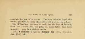 - Erstbeschreibung: Hampson, G. F. (1902): The Moths of South Africa (Part II.). — Annals of the South African Museum 2: 255-446.